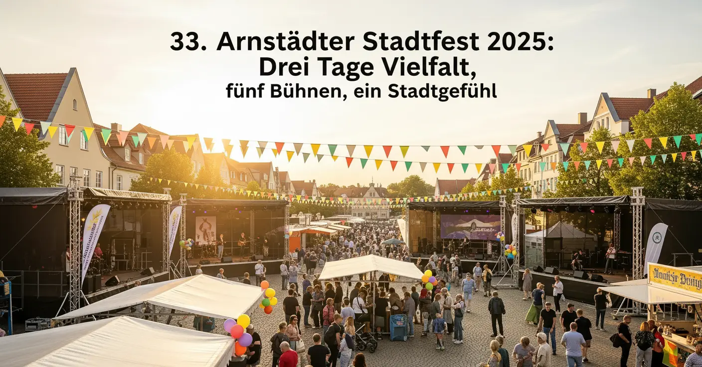 Arnstadt feiert vom 5.–7. September eine lebendige Innenstadt-Festmeile mit fünf Bühnen, Riesenrad, Kulinarik, Vereinen und Headlinern Marquess & Sarah Zucker.